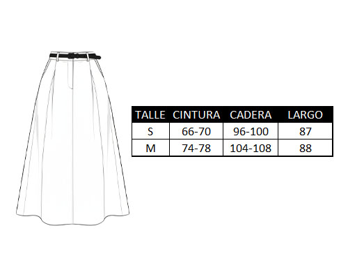 *Las medidas están expresadas en centímetros y corresponden a las medidas corporales. La modelo mide 1.68 y está usando talle S.