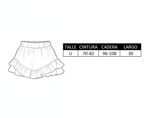 *Las medidas están expresadas en centímetros y corresponden a las medidas corporales. Talle único que abarca hasta un talle 42 de pantalón gracias a su cintura elástica. La modelo mide 1.68