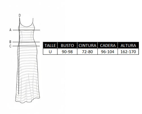 *Las medidas están expresadas en centímetros y corresponden a las medidas corporales. La modelo mide 1.68.